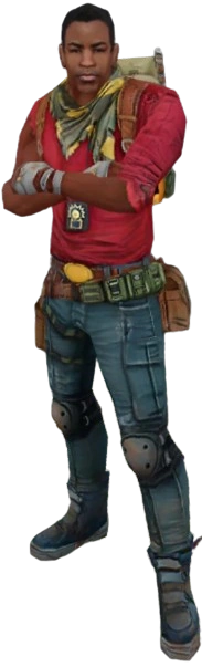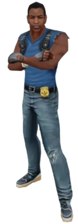 In the original game, he is described as a city cop with an attitude. He has dark skin, scars under his eyes and wears a navy blue shirt. He has dark brown hair. He can be purchased for 10,000 coins.